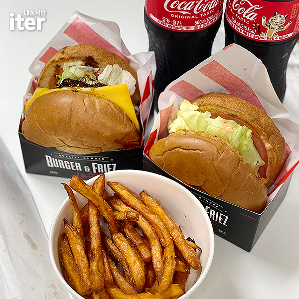 일단 코카콜라 페트로 주시는 게 너무 마음에 들었습니다. 배달로 버거를 시킬 땐 콜라가 일반 버거집에서 먹는 컵에다가 얼음 가득으로 올 때가 많은데 그렇게 되면 올 때 동안 얼음이 녹아서 콜라가 너무나 맹맹해져서 싫었거든요.. 근데 여기는 페트로 주셔서 너무 만족스러웠습니다!