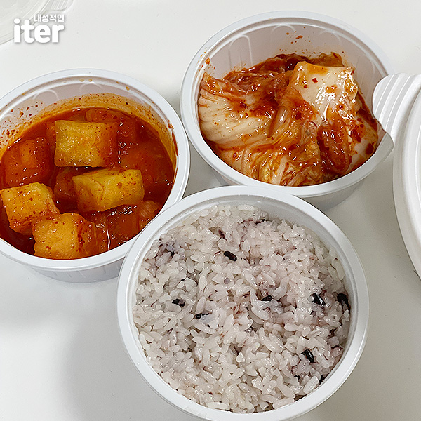 공깃밥은 추가해서 주문한 거였고, 반찬은 김치와 깍두기뿐이지만 양이 넉넉해서 푸짐하게 먹었습니다. 밥도 용기에 꾹 눌러 담으셨는지 제 기준에서는 많더라고요. 깍두기와 김치도 제 입맛에 딱 맞아서 너무 좋았습니다.
