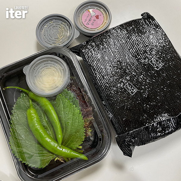 육칠이에서 시켜먹고는 반해버렸던 포인트가 있는데.. 그건 바로.. 고기가 식지 않게 저렇게 따로 포장해주시는 센스 때문이었습니다. 아니.. 고기는 따끈할 때 먹어야 한다는 것을 아주 잘 알고 계시는 사장님.. 감사합니다!