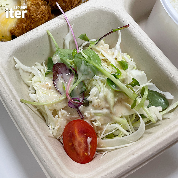 깔끔한 샐러드와 밑반찬들과 소스, 국물까지!