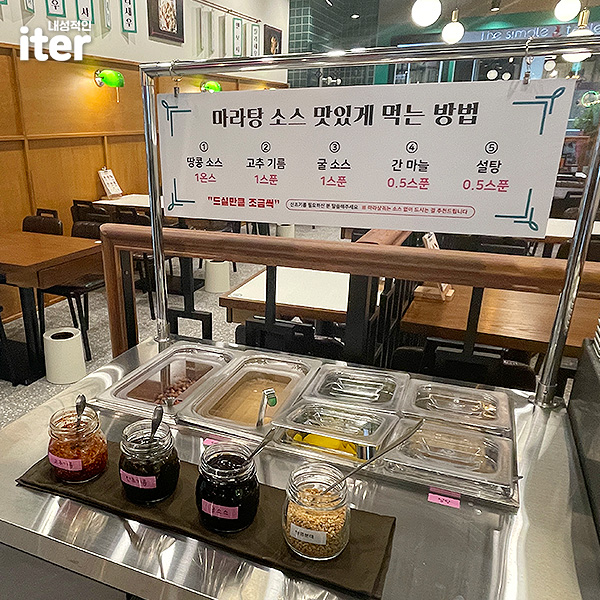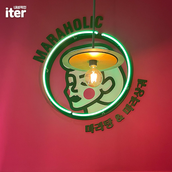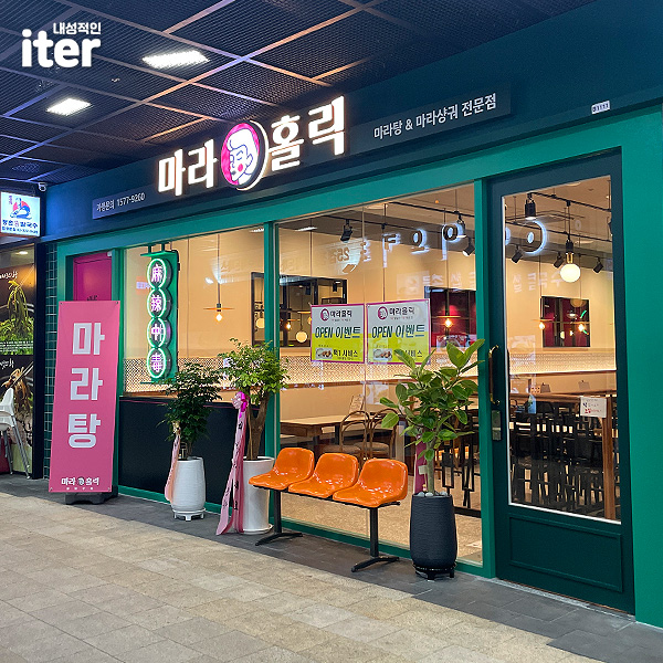 마라 홀릭은 찾아가는데 좀 헷갈렸는데.. 메세나폴리스 안에 맛있는 거리에 있습니다. 벌써부터 깔끔한 느낌이 가게 외부에서 딱 느껴지지 않나요? 초록과 핑크의 조합이라ㅎㅎ 안 어울리는 것 같으면서도 은근 잘 어울리는 저 색 조합은 뭘까요?ㅎㅎ