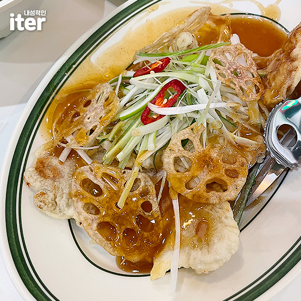 꿔바로우가 나왔는데 안에 연근튀김? 도 있어서 먹어보니 맛있더라고요. 저.. 연근튀김 처음 먹어봅니다. 바삭한 게 아주 제 스타일! 오픈한 지 얼마 안돼서 가니 이렇게 오픈 서비스로 멘보샤를 주는 이벤트도 하고 있었습니다. 멘보샤도 맛있었던! 유튜브 보니까 집에서 만드는 레시피도 있던데 도전해봐야겠습니다.
