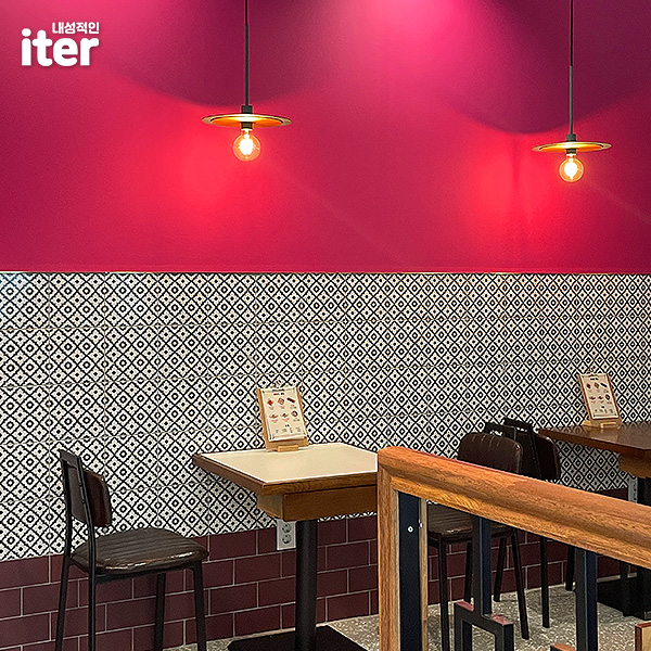 마라 홀릭 합정점은 오픈한 지 얼마 되지 않았을 때 방문해서 깔끔한 내부가 눈에 들어왔습니다. 초록과 핑크의 조합이 여기서도 잘 보이네요. 내부도 꽤 넓어서 앉을자리도 많고 점심에 웨이팅도 없어 보입니다. 지금 사진을 자세히 보니 자리마다 콘센트도 보이네요. 밥 먹으면서 편하게 충전까지 할 수도 있겠습니다.