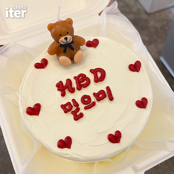 사실.. 다른 느낌의 도시락케이크를 선물하려고 했지만.. 시간이 촉박해서 급하게 주문했습니다. 도시락 케이크 중 빨리 받을 수 있는 케이크는 레터링 디자인이라고 하셔서 보내주신 시안에서 맘에 드는 걸로 선택! 이름은 그냥 지우지 않고 올릴게요! 너무 이쁘게 써 주셨기 때문에! 심플+귀여움이 너무 맘에 들었던 디자인이었습니다! 실물로 보니 더욱더 만족!