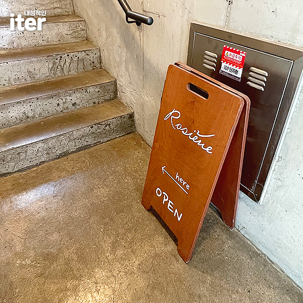 안 쪽으로 들어오면 입간판이 또 있습니다. 혹시나 헷갈리시는 분들을 위해 가져다 놓으신 듯 합니다. 계단 올라가는 곳도 먼가 신비로운 느낌이 드는 곳입니다ㅎㅎ 지인 생일로 준비한 케이크가 잘 나왔을지 두근두근 기대하며.. 한 걸음 올라갔습니다.