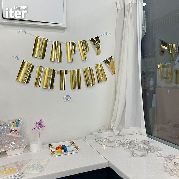 케이크 인증샷을 찍을 수 있는 테이블도 있고, 인형들이랑 인테리어를 잘 꾸며놓으셨더라고요. 아기자기했습니다. 당연히 주문제작 케이크 맛집이라 옆에는 여러 가지의 초도 있고! 저도 여기서 케이크 인증샷을 찍으니 정말 잘 나왔습니다!