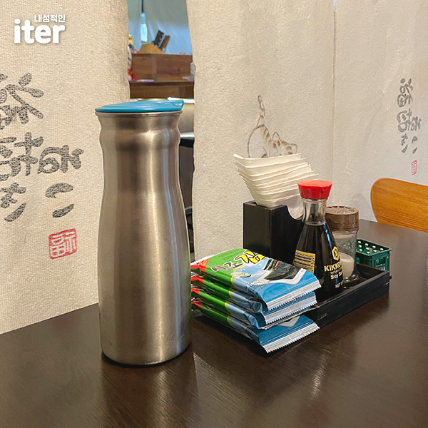 입구를 들어오니 바 자리가 바로 보이고 내부가 깔끔하고 넓어서 좋았습니다. 조명이 아늑한 느낌을 주더라고요. 참치랑 같이 먹을 수 있게 테이블마다 사조김도 한가득 놓여 있었습니다. 벌써부터 참치 먹을 생각에 두근두근..