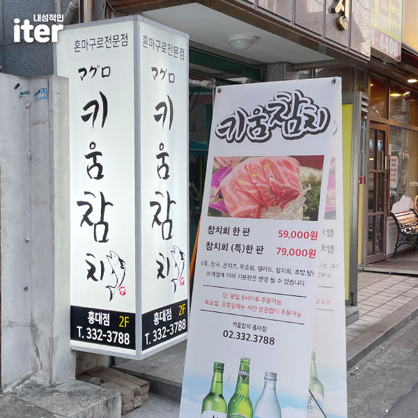 건물 2층에 위치한 혼마구로 전문점 키움 참치 홍대점!