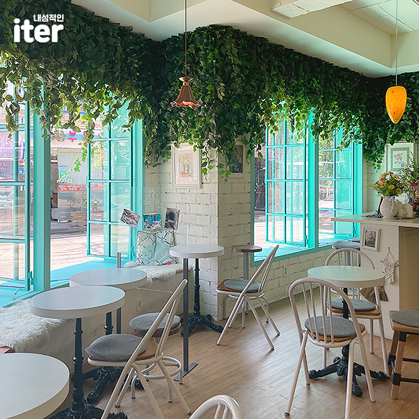 민트 색감이 너무나 귀여운데 메뉴 종류도 많은 카페!