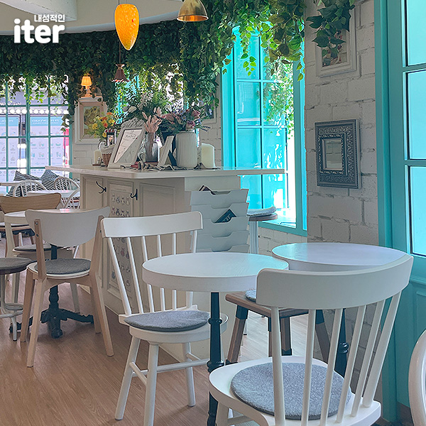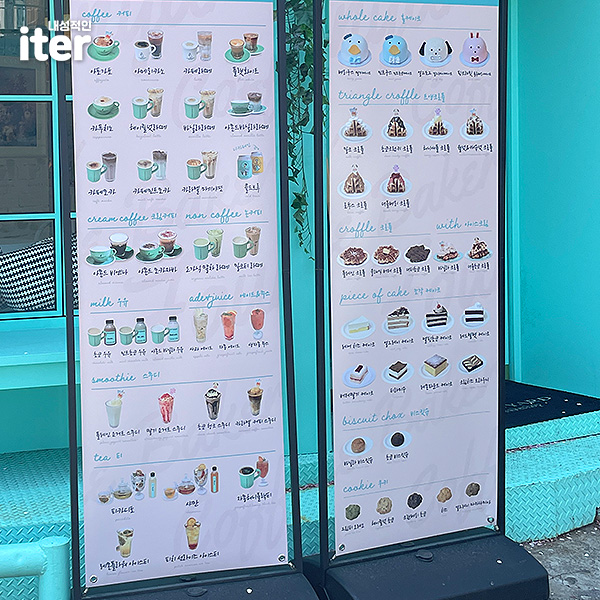 민트 색감이 너무나 귀여운데 메뉴 종류도 많은 카페!