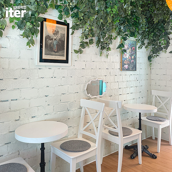 앉을 테이블은 진짜 많고, 쭉 안 쪽으로 들어오면 테라스 같은 공간도 있습니다! 평일 점심인데 테라스에 앉아 있는 손님들이 많아서 사진은 없지만.. 너무 이쁜 공간이 많아서 사진을 어떻게 찍어야 할지 고민되더라고요. 다 너무 이뻐서.. 친구들이랑 저녁 먹고 꼭 와봐야 할 카페를 드디어 찾은 것만 같아서 너무 좋았습니다! 저는 사진만 찍고 호다닥.. 사무실로..