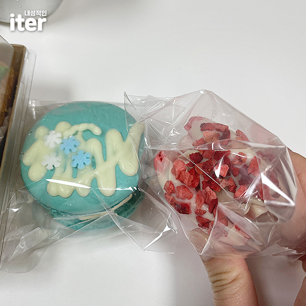 마카롱 좋아해서 뚱카롱으로 시켜봤는데.. 가격에 비해 크기가 작으면 어떻게 하지?라고 생각한 제가 참 바보 같습니다. 가격 값을 하더라고요. 진짜 뚱카롱이고 달달하니 좋았습니다. 역시 마카롱은 2개 정도가 딱 적당한 듯합니다. 욕심내서 더 많이 시켰으면 큰일 날 뻔했습니다..