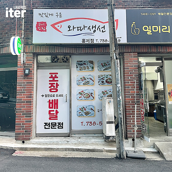 포장/배달 전문이라고 적혀있는데 옆에 있는 일미리 금계 찜닭과 같이 운영하는 중이신 듯합니다. 생선구이와 찜닭이라니.. 안 어울리지만 사장님이 정말 바쁘실 것 같더라고요. 2개의 가게를 운영하기란 정말 쉽지 않으실 텐데.. 대단하십니다! 위치는 홍제역 해링턴 플레이스 쪽에 있습니다!