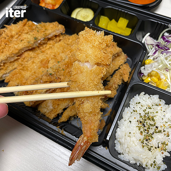 리뷰이벤트로 주신 새우튀김도 맛있었습니다. 크기가 커서 1개로도 충분했습니다. 튀김옷을 정말 잘 입히시는 듯합니다. 눅눅하지 않고 바삭한데 속은 촉촉한 그런 느낌이었어요!