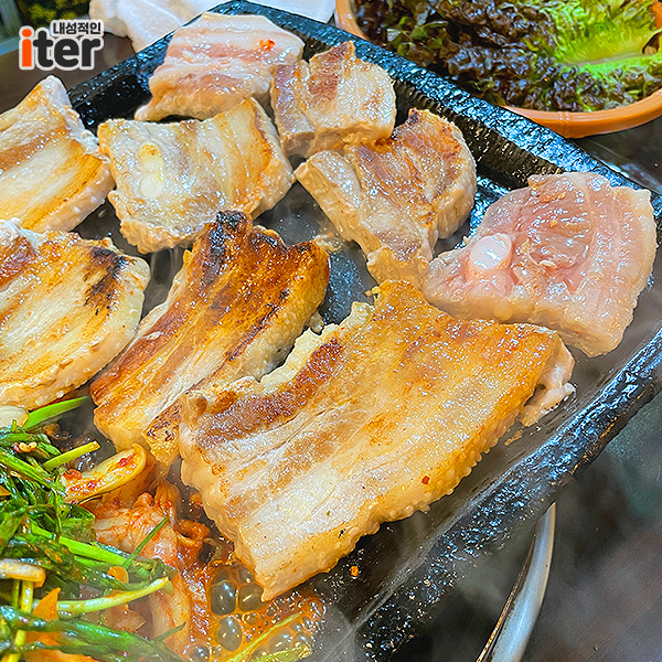 삼겹살이 좀 질긴 느낌? 그게 좀 많아서