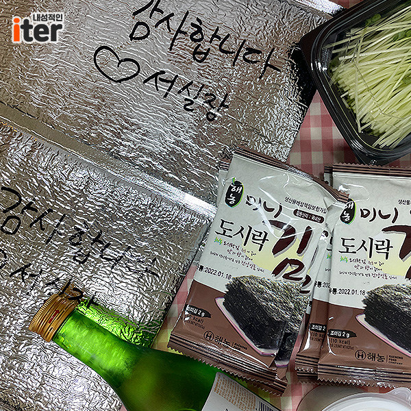 먹기 전부터 벌써 기분이 좋아지게 만들었어요! 사진에서도 보이는 것처럼 도시락 김도 정말 넉넉히 주셔서 참치랑 곁들여 아주 잘 먹었답니다.