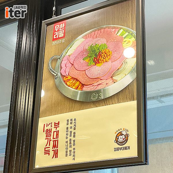 킹콩 부대찌개는 매장이 많이 좁진 않지만 테이블도 많이 있고 밥과 라면이 무한리필이라 너무 좋아요.