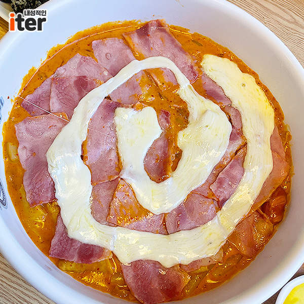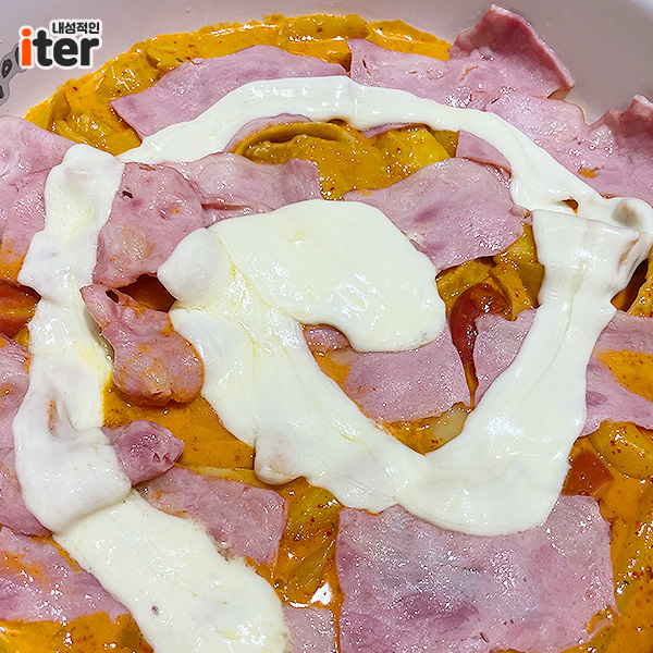 저희는 로제 떡볶이를 주문했습니다. 사실 엽떡은 로제든 기본이든 다 맛있지만.. 이상하게 다른 떡볶이집의 로제보다 엽떡이 더 맛있더라고요. 왜 그런지 저도 잘 모르겠습니다 하핳.. 아무튼 로제에 꽂혀선 계속 로제만 먹게 되는 듯하네요. 베이컨을 추가하면 더 맛있는 떡볶이를 즐기실 수 있으니 베이컨 추가하는 걸 추천드립니다! 그리고 사진에서는 치즈가 적어 보여도 어마어마하게 많이 주신답니다. 떡볶이엔 또 치즈가 빠질 수 없죠?ㅎㅎㅎ