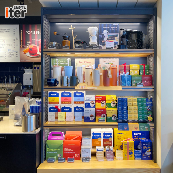 픽업하는 곳 한쪽에는 이렇게 이디야 상품들도 판매 중인데요. 스벅에서도 텀블러를 유심히 봤는데.. 저는 여기서도 텀블러 이쁘다.. 컵도 이쁘다 이러고 있더라고요.. 아무래도 저는 텀블러 집착이 좀 있는 듯합니다.. 왜 그러는 걸까요?ㅋㅋㅋㅋ히유