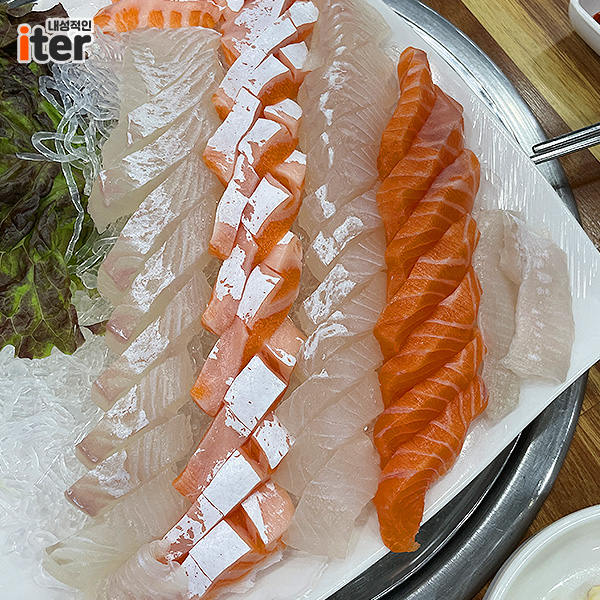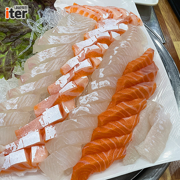 드디어 주인공인 회가 나왔네요. 저희는 광어와 연어를 시켰어요! 역시 방문해서 먹으니 싱싱하고 맛있었습니다. 다만 은평 어시장은 정말 정말 사람이 너무 많아서.. 정신이 하나도 없을 정도예요.. 아무래도 회와 소주를 곁들여서 드시는 어르신분들도 많았어서.. 어쩔 수 없죠 뭐ㅜㅜ 그래서 사람 많은 건 싫다 하시는 분들은 비추입니다. 회는 정말 싱싱하고 맛있어요! 광어는 역시 고소하고 맛나고 연어도 나름 통통하고 괜찮았습니다!