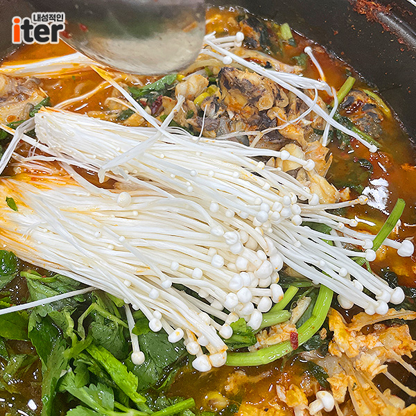 매운탕에 야채도 많이 넣어주시긴 하는데.. 옆 테이블에 매운탕에는 버섯이 있고, 저희 매운탕은 버섯이 없어서 따로 달라고 말씀드렸네요ㅎㅎ 일하시는 아주머니께서 아주 친절하게 푸짐히 얹어주셨어요ㅎㅎㅎ 상했던 기분이 바로 풀어졌죠ㅎㅎㅎ..(맞아요.. 저 아주 단순하답니다..ㅎㅎㅎ헿)