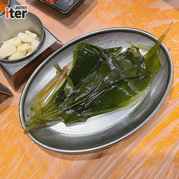 깔끔하게 밑반찬이 나오고 고기랑 같이 구워 먹을 수 있게 김치도 큼지막하게 주셨네요ㅎㅎ 다른 반찬들은 뒤로하고 고기와 찰떡궁합이라 생각하는 명이나물과 많이 먹었어요ㅎㅎ 명이나물은 추가비를 내야 하지만 너무 맛있어서ㅠㅠ 추가하지 않을 수가 없답니다..