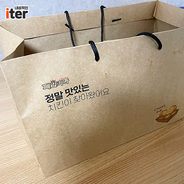 페리카나는 이렇게 깔끔한 종이가방에 배달되어 옵니다! 배달기사님들도 편하게 들고 오실 수 있어서 진짜 좋은 것 같아요! 그리고 저희 동네만 그런지 모르겠지만.. 배달기사님들도 너무나 좋으신 분들이 오시는.. 저희 집은 공동현관이 있어서 배달요청 사항에 비번을 꼭 써드리는데.. 번거 로우실 텐데도 잘 올라와주셔서 너무 감사하더라고요..