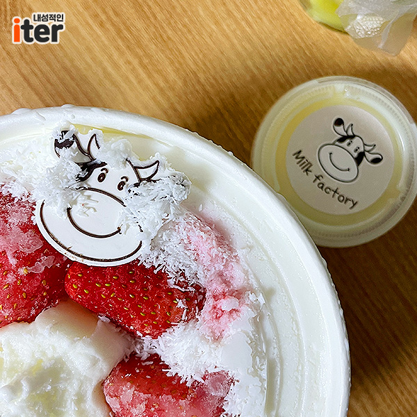 빙수라서 그런지.. 포장을 엄청 꼼꼼히 해주셨어요! 혹시나 녹지 않게 잘 싸주셔서 정말 차가운 상태에서 맛있게 먹었네요ㅎㅎ 배달도 빨랐고 포장상태는 정말 최상이었답니다! 밀크팩토리 자체 저 로고도 너무 귀엽지 않나요?ㅎㅎ 우유빙수여서 밀크팩토리인것 같은데ㅎㅎ 너무 고소하고 맛있었고, 딸기는 상콤상콤!