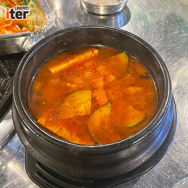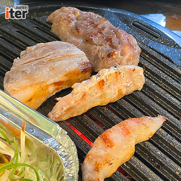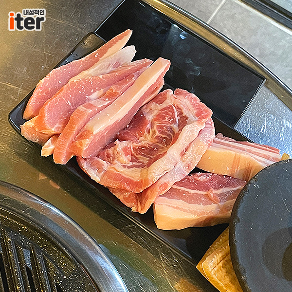 사이드 메뉴를 각각 찍어보았는데요ㅎㅎ 그냥 하나하나 다 맛있어요ㅎㅎㅎ 맛없는 게 없답니다 여기는.. 추억의 도시락은 말할 것도 없고 김치말이 국수는 새콤달콤하니 아주 맛납니다! 김치찌개는 밥 한 공기 더 시켜서 뚝딱해야 하는 그런 맛이고요! 그럼 이제 주인공인 고기 사진 보여드립니다~