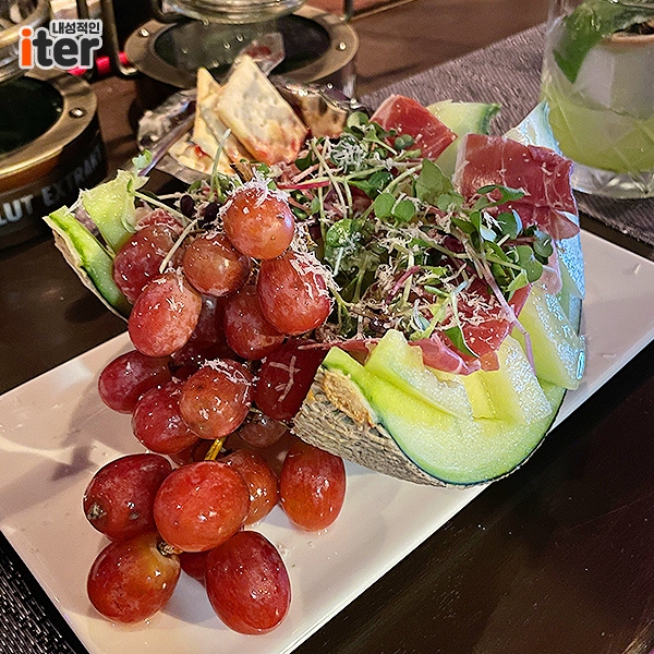 사실 칵테일과 이걸 먹으러 갔다고 해도 과언이 아니죠ㅎㅎ 너무 맛있어 보이지 않나요? 멜론은 너무나 좋아요ㅜㅜㅜ 진짜 독한 술과 달달한 멜론은 넘나 잘 어울리는 것!
