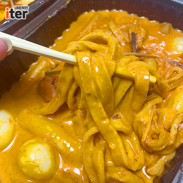 두둥! 드디어 주인공이 개봉되었습니다! 비주얼부터가 정말 남다르죠? 예전에 주문할 때에는 파채가 안 올라갔었는데... 오늘은 파채도 올라가 있네요! 간간히 메추리알과 소시지도 보이고ㅎㅎ 아 맞다! 저는 어묵과 떡 반반을 시켰는데 기다란 어묵이 면처럼 잘라져 있어서 그게 너무 좋았어요! 어묵면 같이 호로록 국수처럼 먹을 수 있어서 참신하고 맛나더라고요ㅎㅎ