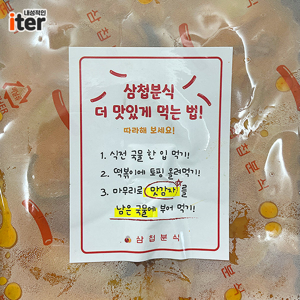 삽첩분식 더 맛있게 먹는 법이 있네요! 사실 저는 감자폭탄은 없는 걸로 시켜서... 못 먹었지만... 삼첩분식하면 떡볶이와 감자를 빼놓을 수 없습니다! 저는 왠지 남길 거 같아서.. 그냥 감자폭탄은 없이 주문했어요! 혹시나 감자를 좋아하시는 분이라면 감자폭탄 꼭 체크하셔서 떡볶이와 같이 드셔 보세요!