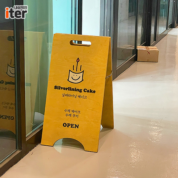 수제 케이크, 수제쿠키가 쓰여있는 입간판이 보이네요. 안으로 들어갈게요. 예약주문 성함과 케이크 종류를 말씀드리면 픽업해 올 수 있는데요! 친구를 강남에서 만나기로 해서 예약해두었던 레스토랑 근처에 있는 곳에서 케이크를 주문했답니다ㅎㅎ