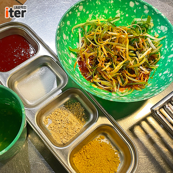 밑반찬들도 있어서 곁들여먹기 좋고, 저는 여러 가지 찍어먹을 수 있는 소스가 있어서 다양한 맛을 즐길 수 있어서 좋더라고요! 물론 제일 좋아하는 소스는 콩가루에 찍어 먹는 걸 아주아주 좋아합니다! 껍데기에 고소 짭짤한 맛과 고소함에 끝판왕인 콩가루는 너무 잘 어울려요ㅎㅎㅎ 거기에 멸치액젓? 같은 거에도 찍어 먹으면 너무 맛있답니다ㅎㅎ
