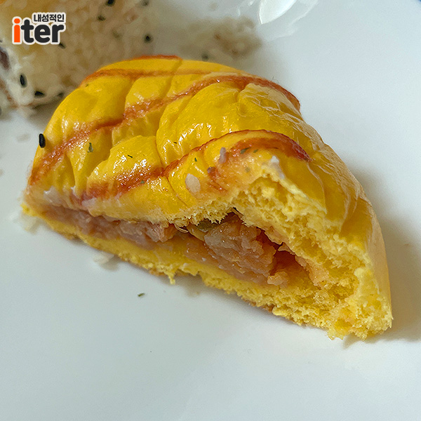 삼각김빵의 김은 비닐에 있는 스티커 같은 거더라고요ㅎㅎ 아무래도 저 김을 표현할 무언가가 없지 않았을까 싶기도 하고ㅎㅎ 삼각김빵라서 비닐이 진짜 삼각김밥처럼 뜯어야 하더라고요ㅎㅎ 그것도 나름 소소한 재미였습니다!