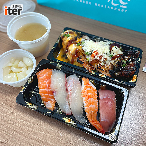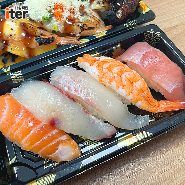 그리고 알고 보니 이 초밥을 저번에도 정말 맛있게 먹어서 포스팅해드렸는데 특허 초밥이었더라고요ㅎㅎ 진짜 맛있었어요ㅎㅎ 같이 포장해 온 막내도 특허초밥 맛있다고 칭찬하더라고요ㅎㅎ 색감도 이쁘죠?ㅎㅎ 조만간 한번 더 먹을까 생각 중이긴 합니다... 자꾸 생각나요 특허 초밥ㅎㅎㅎ