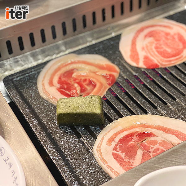 처음에는 꽃삼겹을 시켰는데 진짜 순식간에 다 익어서 빨리 먹고 또 시키고ㅎㅎ 차돌 느낌이라 엄청 맛있고 근데 밥을 안 먹고 고기만 먹은 건 처음인 것 같아요! 그만큼 고기가 맛있었습니다! 그리고 저 네모난 쑥떡? 같은 게 진짜 맛있더라고요ㅎㅎ 역시 떡은 꿀이랑 찍어먹으면 진짜 맛있어요!