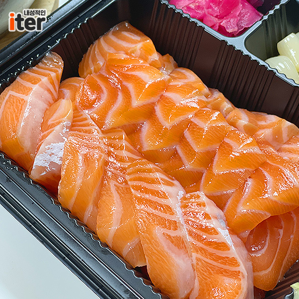 꽤 잘 나오는 연어ㅎㅎ 사실 돈이 아까운 거 아닌가 생각했는데... 전혀요 전혀! 연어를 딱 한 입 먹어보고는 그런 마음이 싹 사라졌답니다! 진짜 연어가 입에서 살살 녹는다는 느낌이 어떤 느낌인지 알았습니다! 두께는 또 얼마나 두꺼운짘ㅋㅋ 뿌듯 만족하며 먹었네요ㅎㅎ
