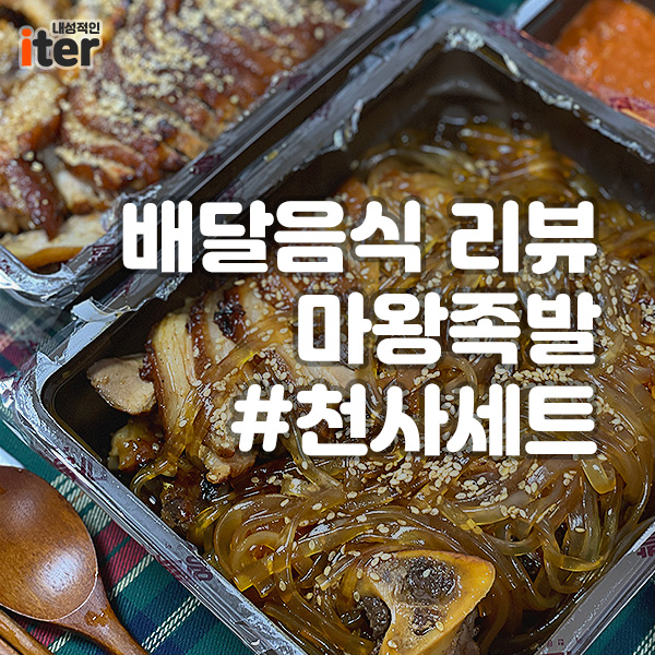 저는 천사세트를 시켰는데요.. 마왕족발에 시그니처인 마왕 통구이와 함께 세트로 먹을 수 있는 메뉴입니다! 그중에 시그니처답게 마왕 통구이는 진짜 아주 맛있어요ㅋㅋㅋ 당면을 좋아하지 않는 저인데.. 당면을 순식간에 먹어치우게 한 맛입니다! 진짜 저 당면 안 좋아해서 지난번 올려드렸던 동궁 찜닭에서도 당면 빼 달라고 말했던 사람인데..
